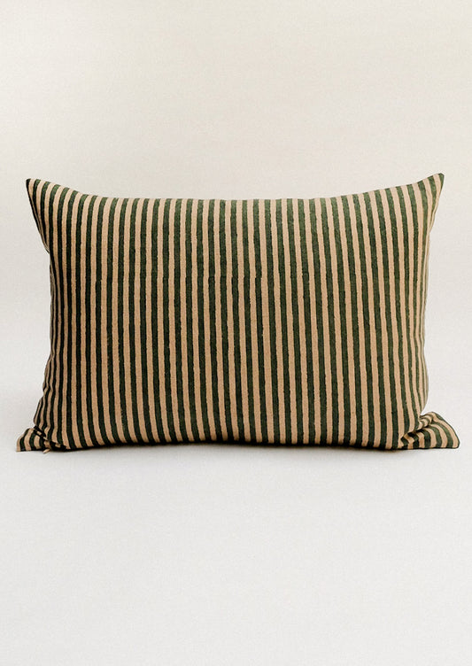 • A lumbar pillow in clay stripe cotton fabric.