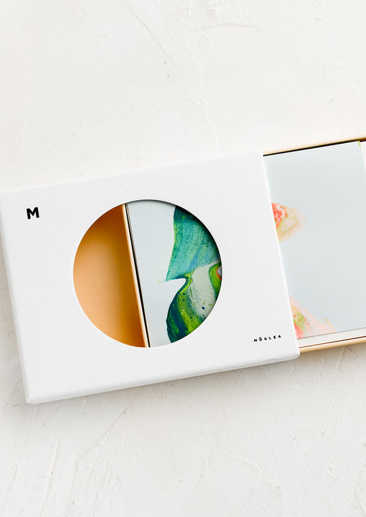 • Paintswirl cards in shades of blue, coral and green.